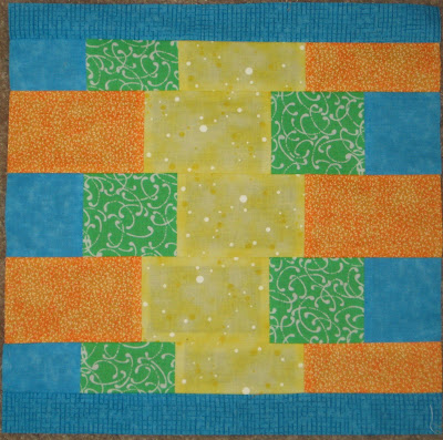 I sent fabric to everyone yesterday, so hopefully you all get it soon. Today I was feeling so inspired by the fabric I chose that I made a block for my quilt. I can't wait to see what you all do with the fabric-I hope the bright colors inspire you too!